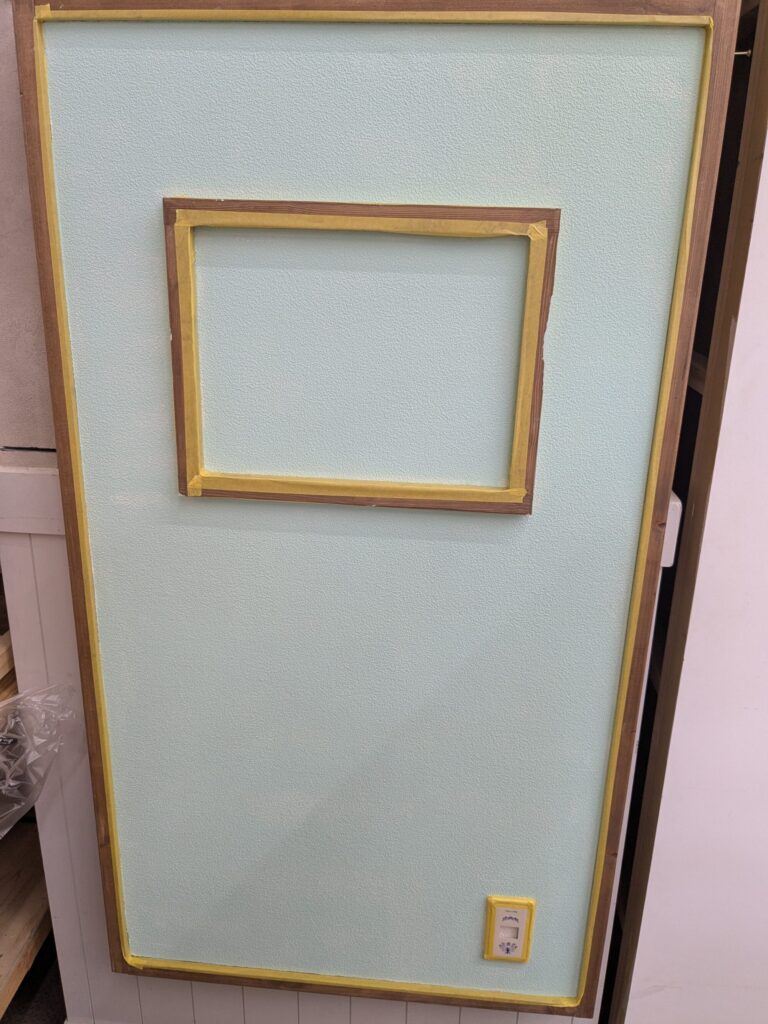 最初は塗料飛散防止のため枠をマスキングテープで養生します。