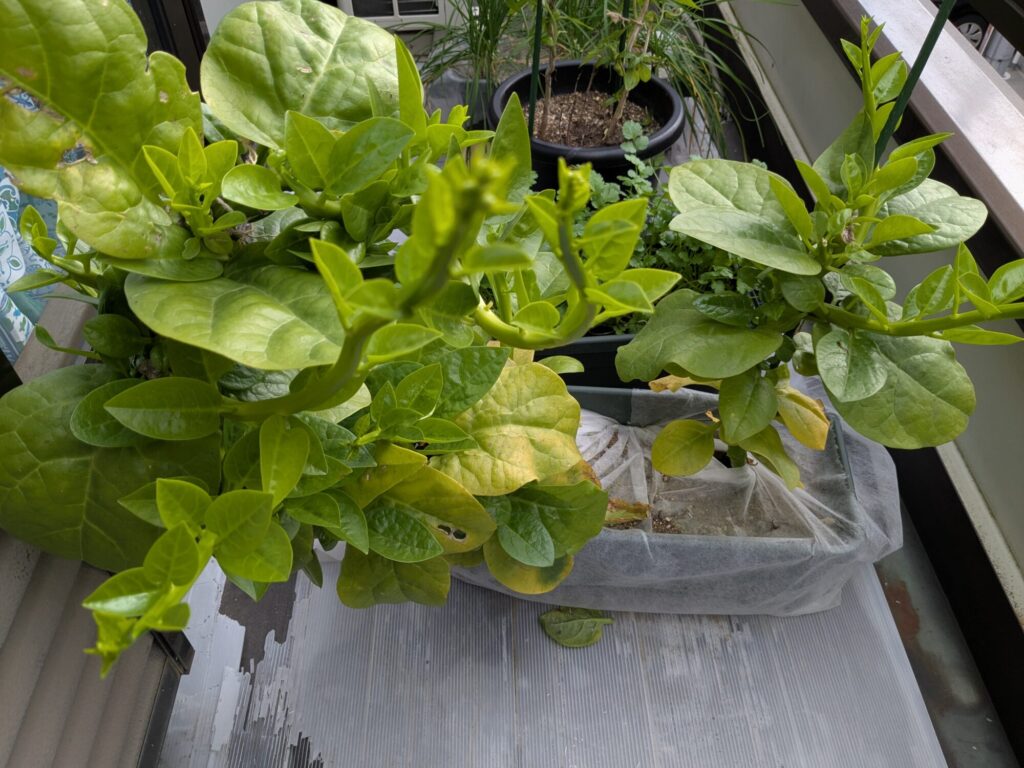 つるむらさきは若芽がでていますが、株全体としては勢いを失っています。