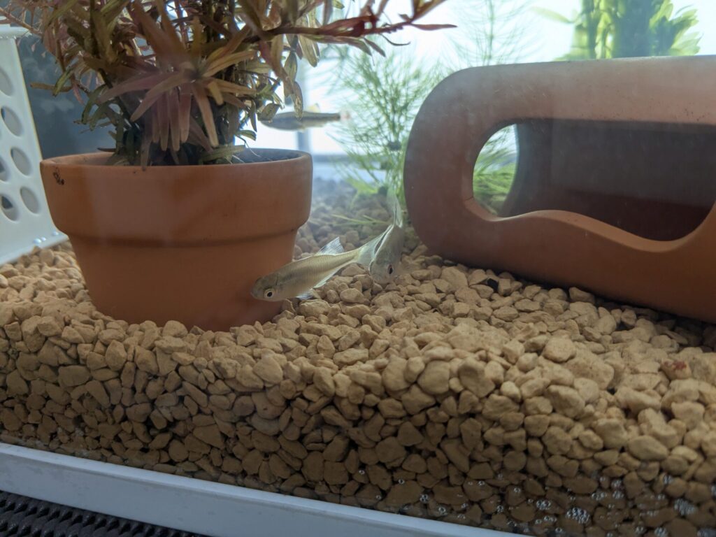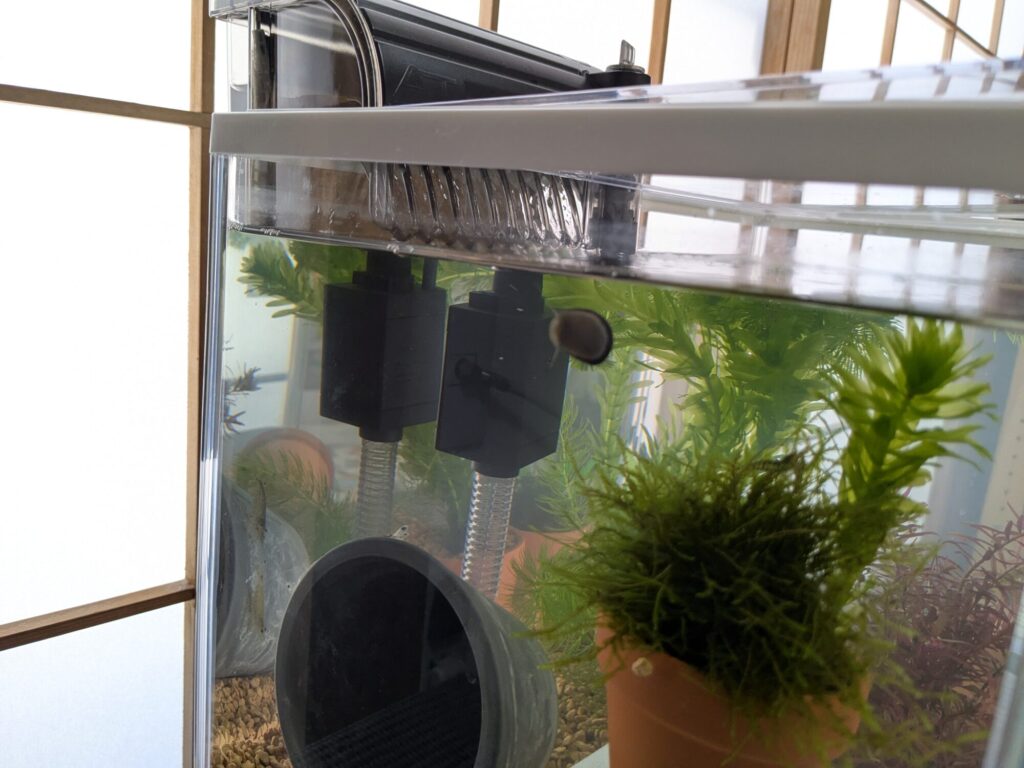 タナゴが追いかけまわすことがないように、隠れ家の配置を変え、縄張りをリセット。