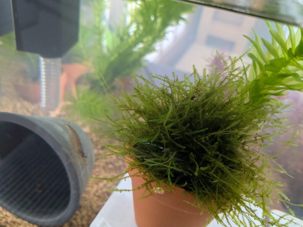 エビの住処となるウィローモスを水面近くの高台に設置し、すみ分けを図る。