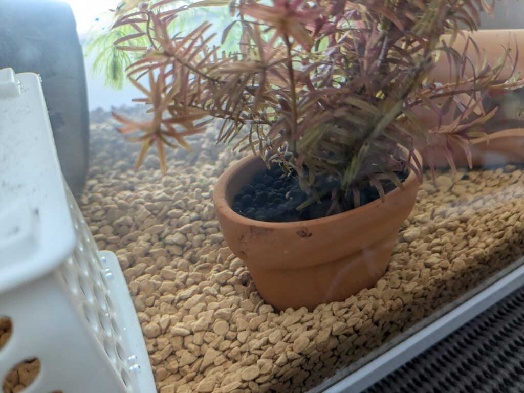 もう一つ隠れ家となる陶器を導入した所、追いかけまわす時間が減少。