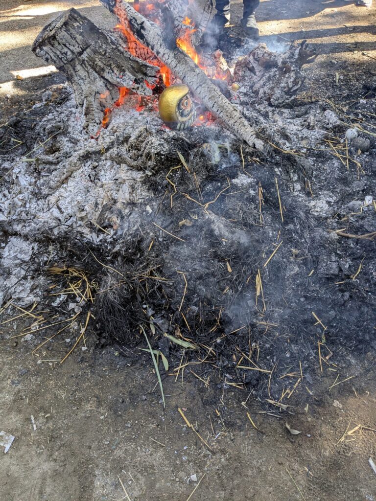 境内のたき火が初詣列に並んで冷えた体を芯まで温めてくれました。