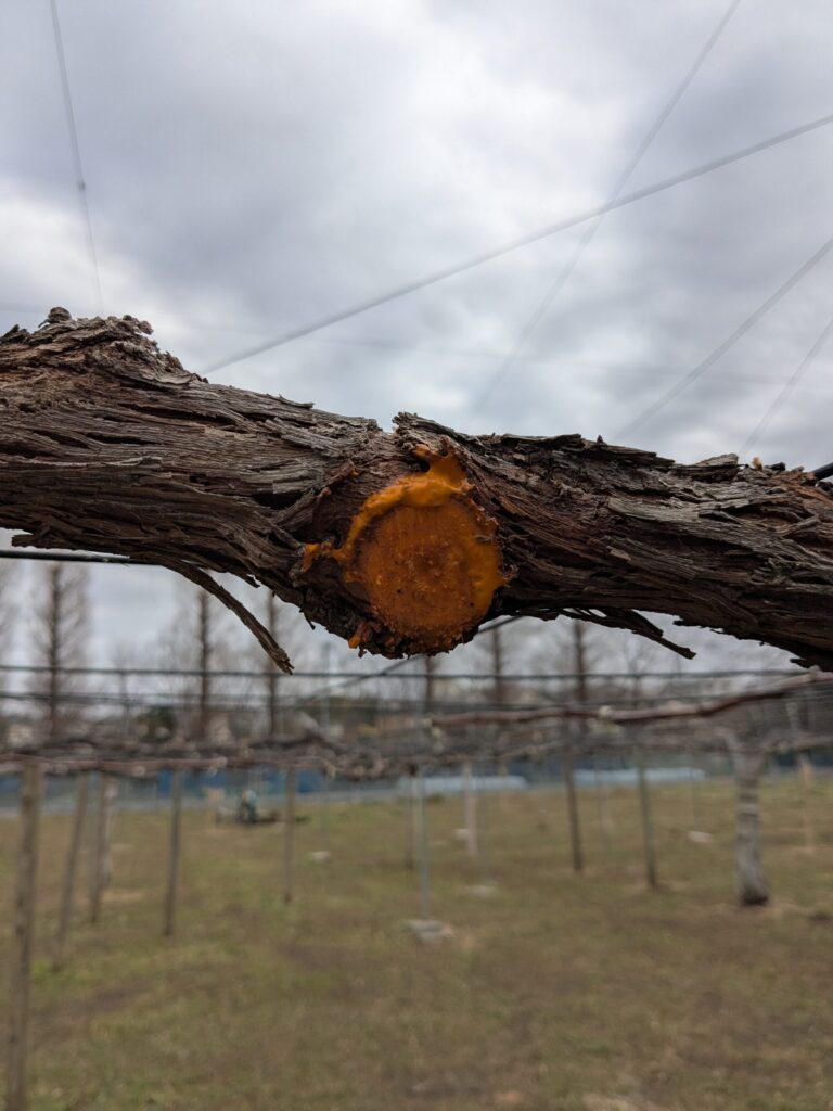 ぶどうの休眠期(葉が完全に落ちた時期)に行います。