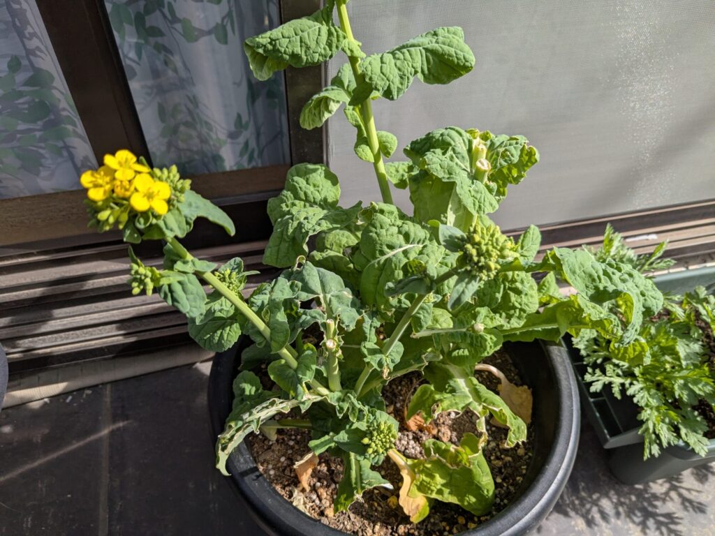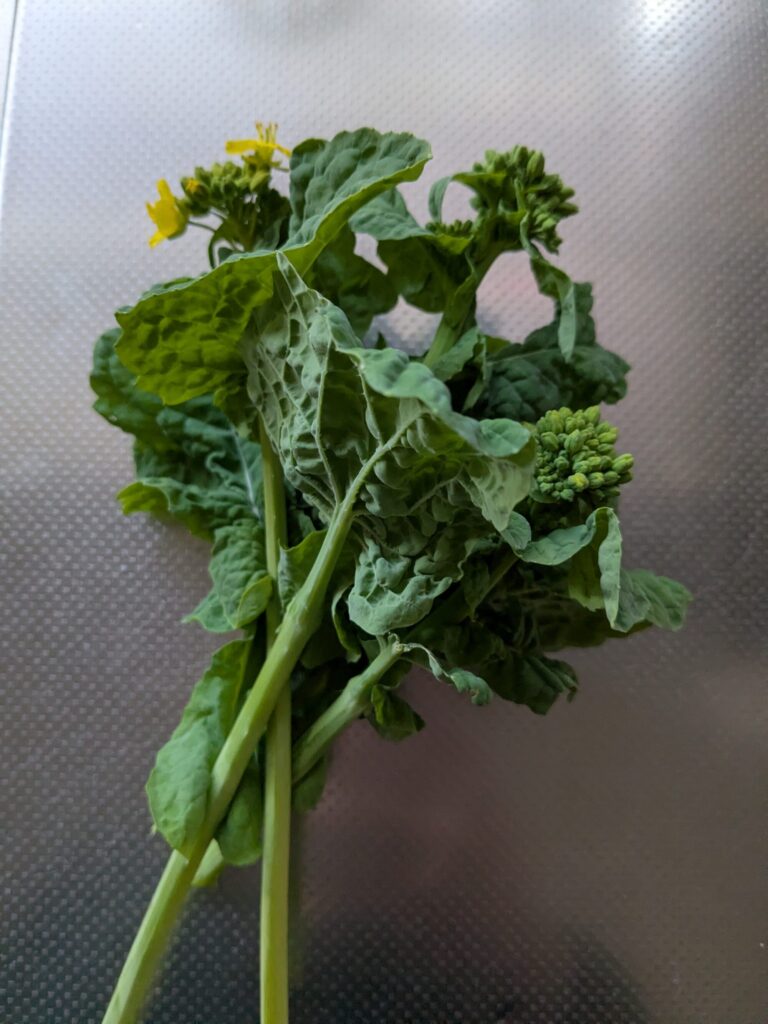 かき菜は花が咲き始める芽が出てきたため、一度収穫。