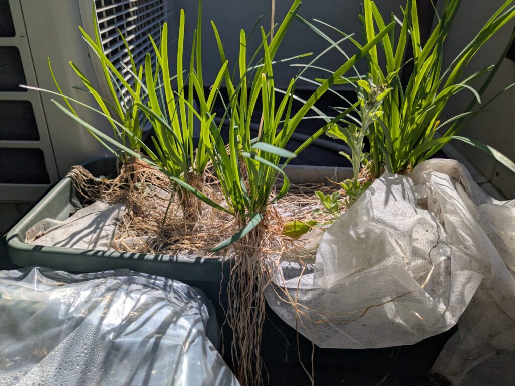 冬には一度枯れた、にらが復活しました。