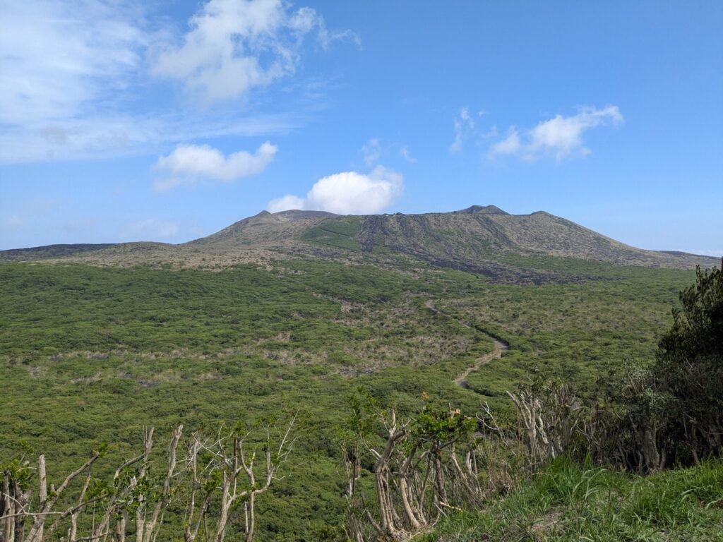 登山道は植生がありましたが、反対側は砂漠のように植物がなく。