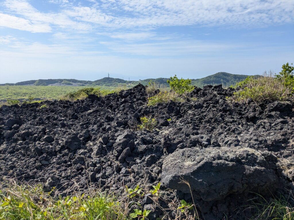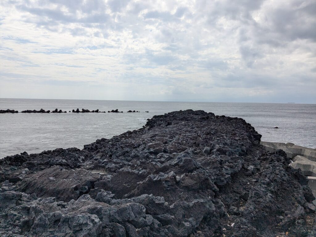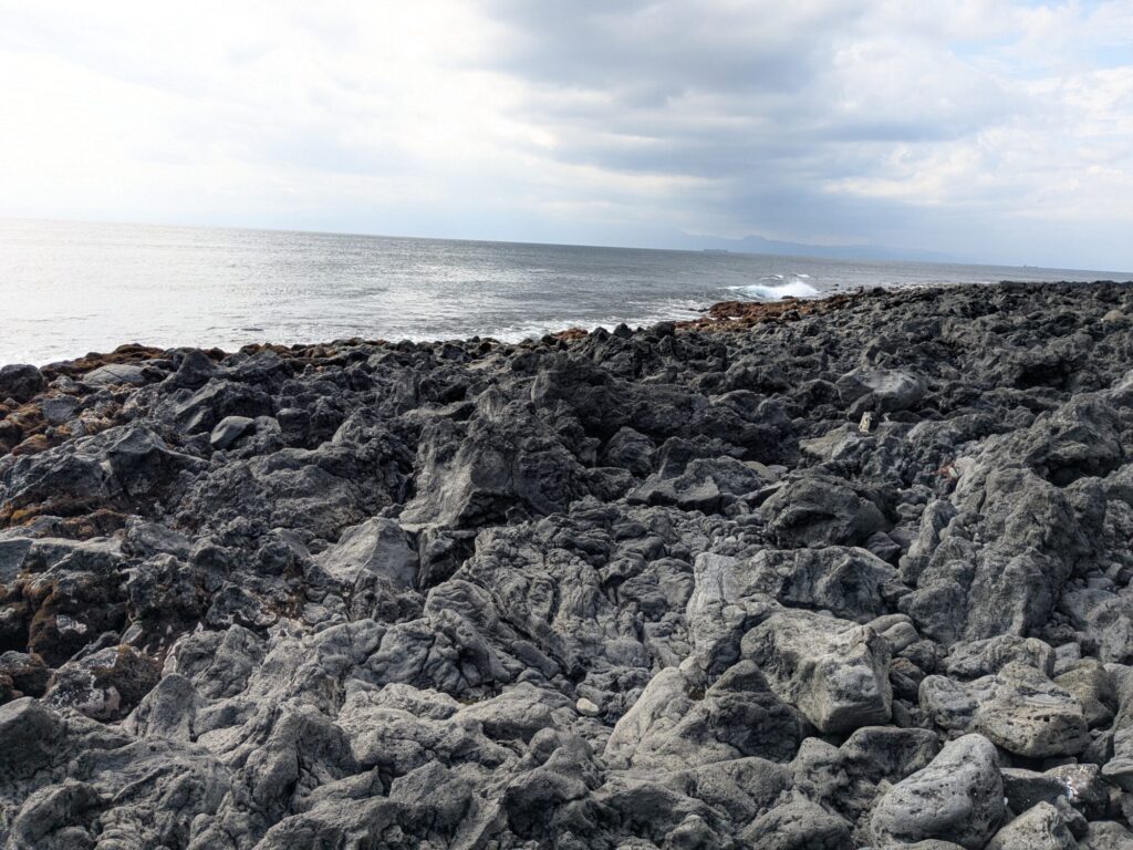 溶岩流が海まで到達したところは、海岸線まで溶岩石が展開していました。