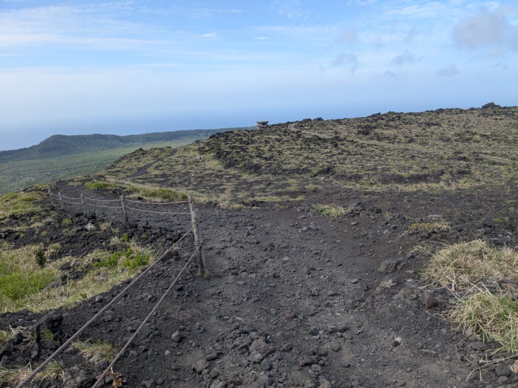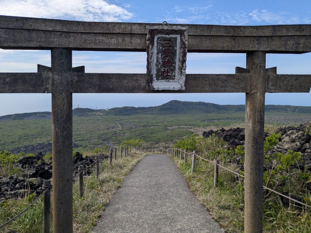 頂上に到着すると、1986年の噴火時には被災を免れた奇跡の鳥居がありました。