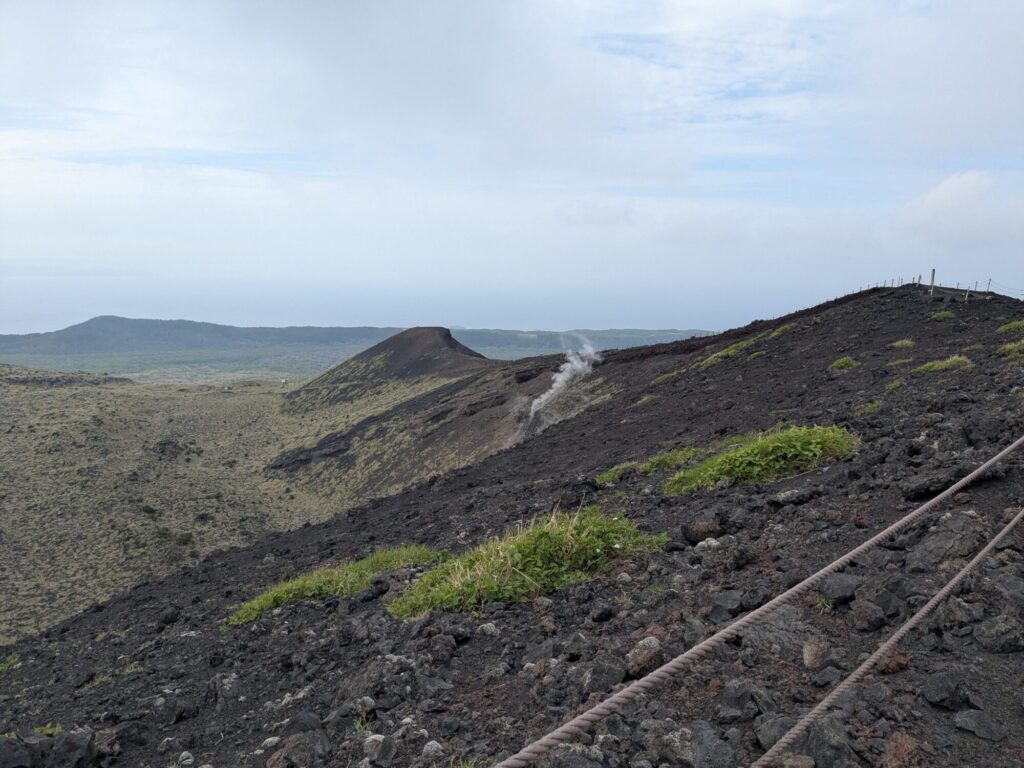 三原山は活火山であるため、現在も複数個所で蒸気が出ていました。